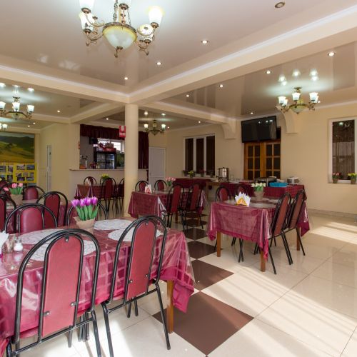 Отель располагает собственной столовой, где гости могут получать питание по системе комплекс на выбор. Кафе и рестораны с подходящей кухней располагаются по соседству с отелем «Замок», поэтому здесь можно порадовать себя разнообразием блюд. Любой гость не зависимо от выбранного тарифа питания, может прийти в столовую в любое время и покушать за дополнительную плату.